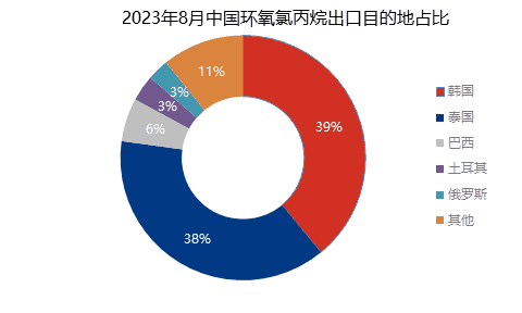 環(huán)氧氯丙烷 截止2023年8月份,中國環(huán)氧氯丙烷出口總量合計在27聚氨酯.07萬噸,同比去年同期跌24.78%國內(nèi)貨源價低,出口具有較大價格優(yōu)勢,主要出口韓國、泰國等東南亞國家,占比77%。